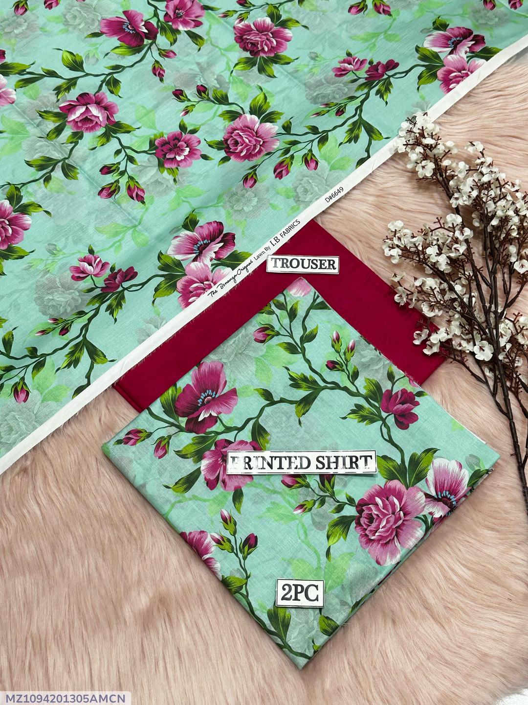 2 Pcs Women's Unstitched Digital Print Suit