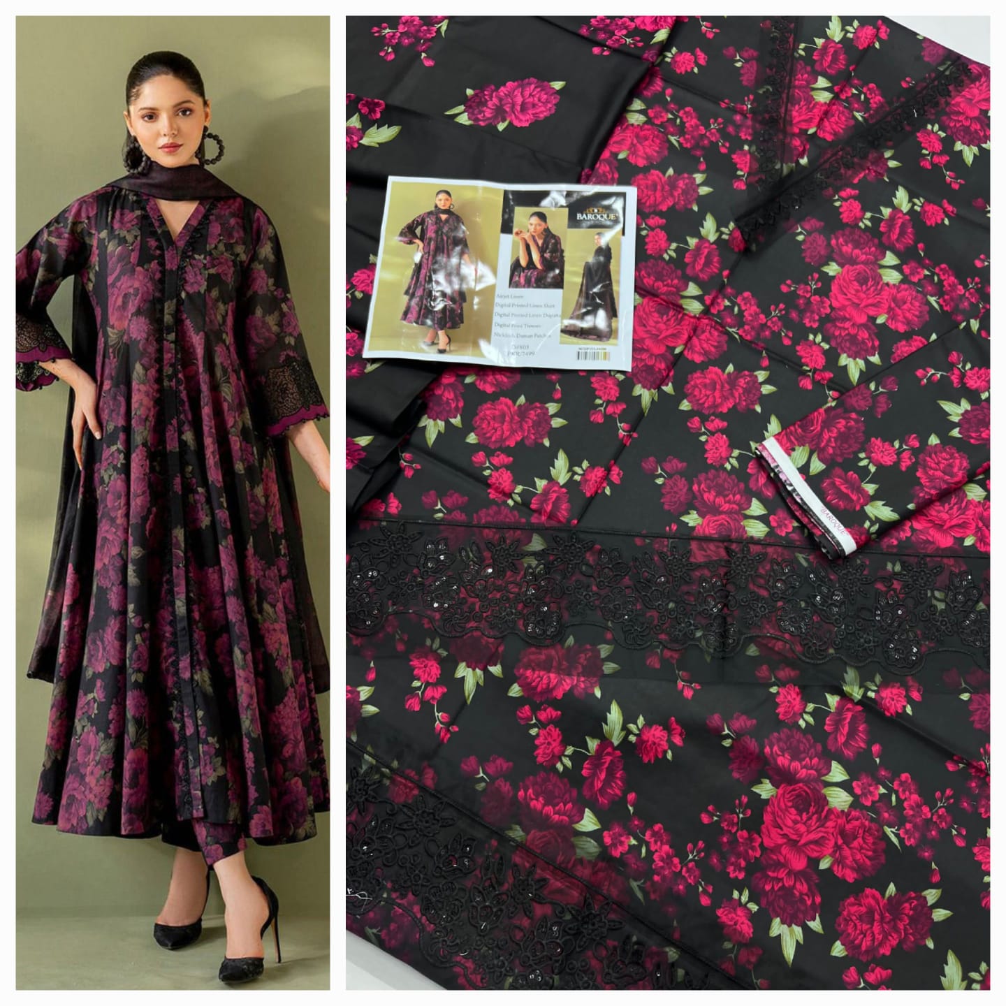 This 3-piece unstitched Lilan suit comes with beautiful patches, perfect for adding a touch of elegance to your wardrobe. Crafted with high-quality material, the suit offers a comfortable and stylish fit. Versatile and easy to customize, this suit is ideal for any occasion.