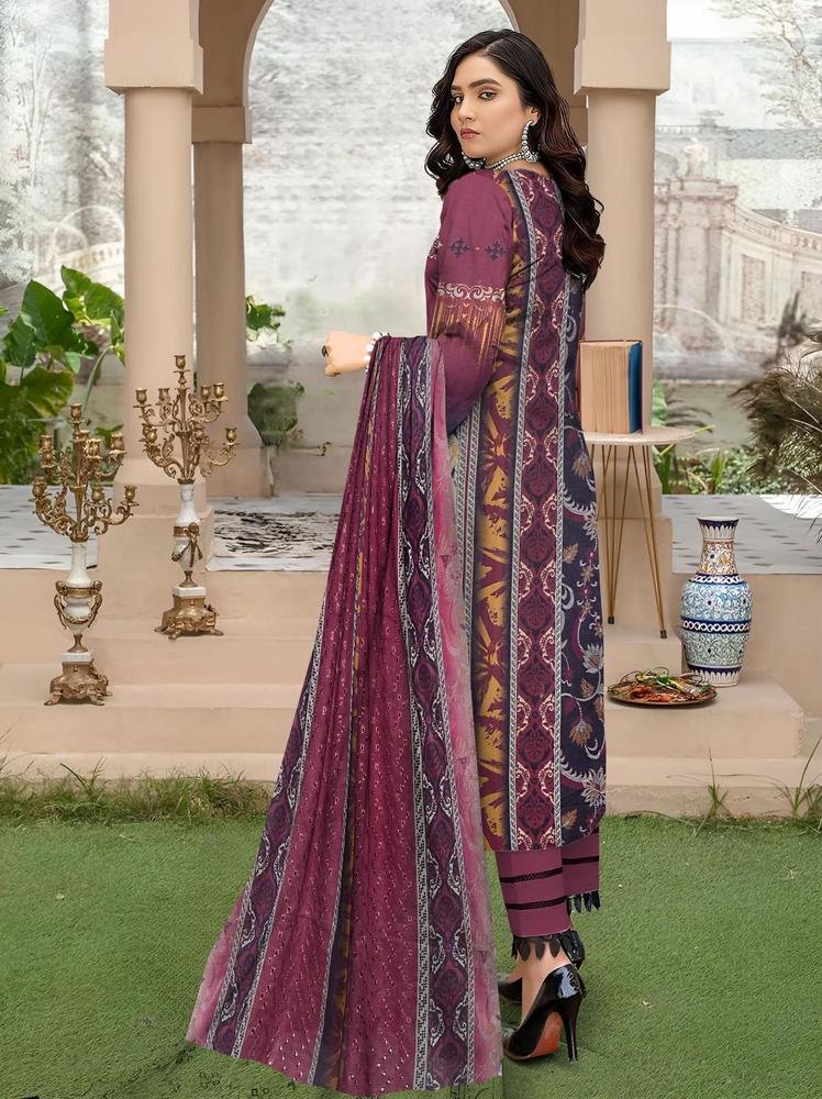 3 Pcs Women's Unstitched Lawn Embroidered Suit