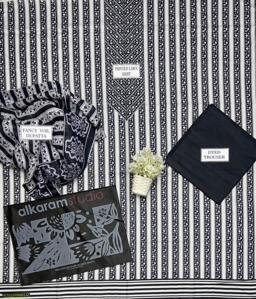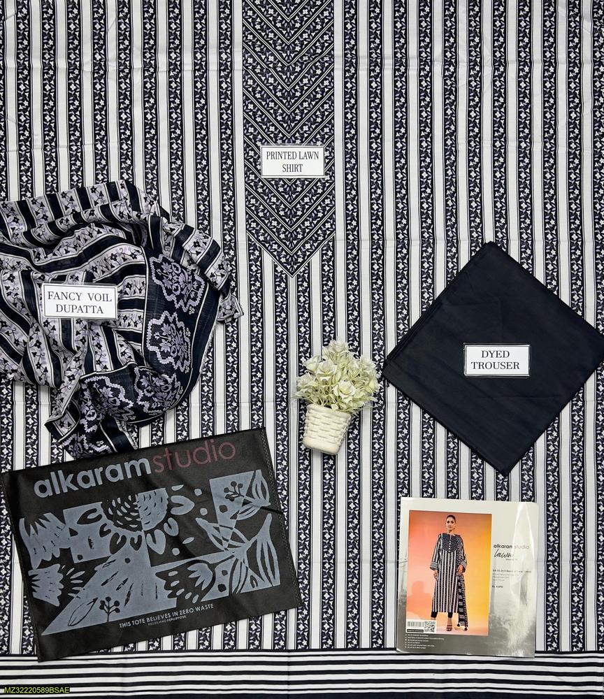 3 Pcs Women's Unstitched Lawn Printed Suit