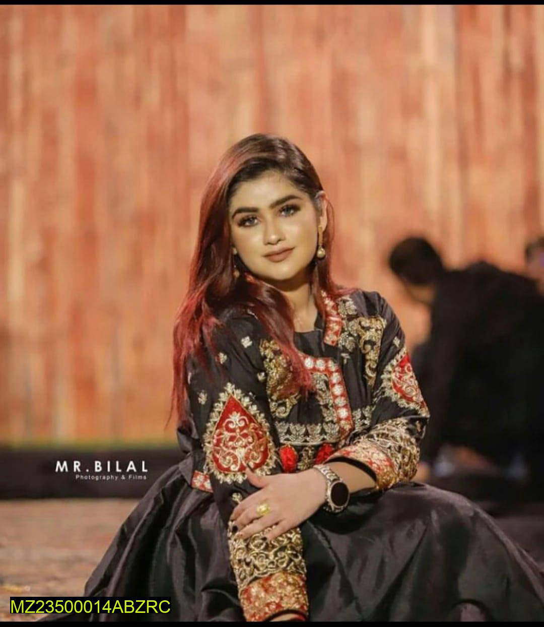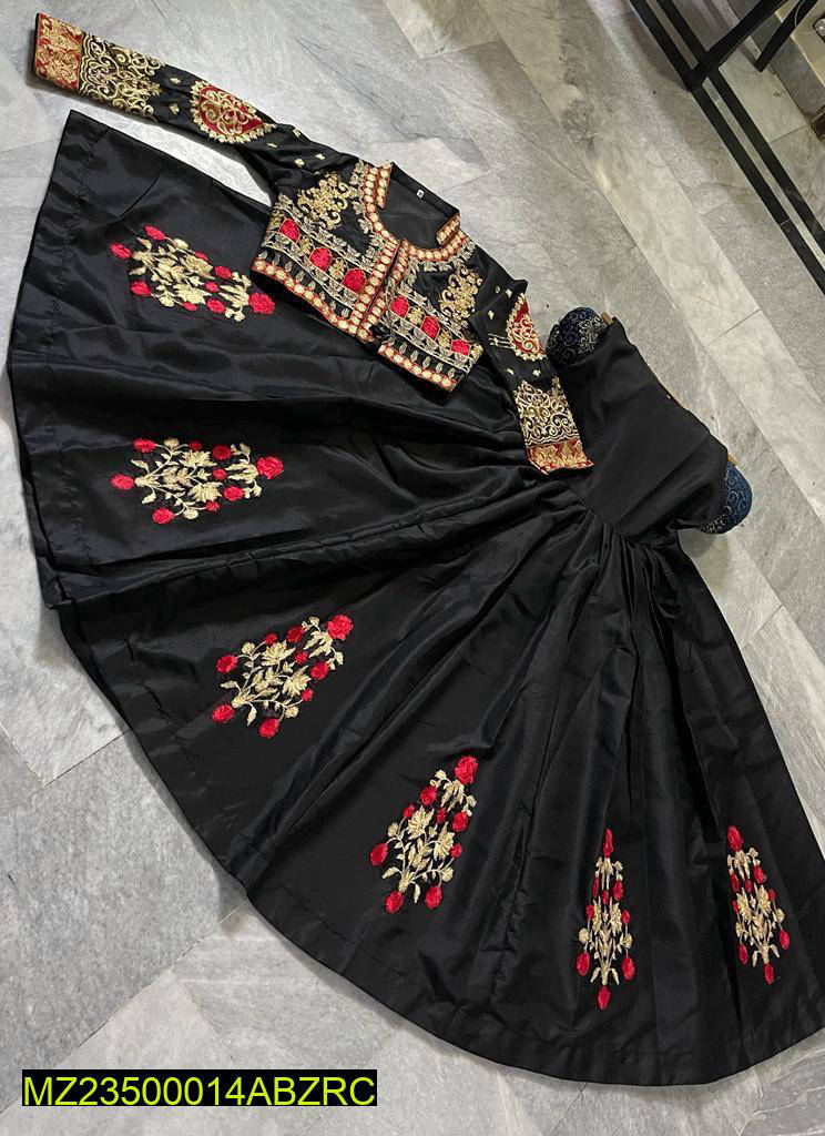 • Fabric: Kattan Silk• Size: Medium• Color : Black• Shirt (Maxi): Length 52 In• Chest: 21 In• Flair(daman): 58 In• Shoulder: 15 In• Sleeves Less• Arm Hole: 9 In• Jacket Size: Length 15.5 In• Shoulder: 15 In• Chest: 22 In• Arm Hole: 10 In• Sleeves: 19 In• Sleeves Hole: 6 In• Trouser Size: Length 38 In• Weiste: 23 In• Hip: 26 In• Thigh: 12 In• Bottom Hole: 8 In